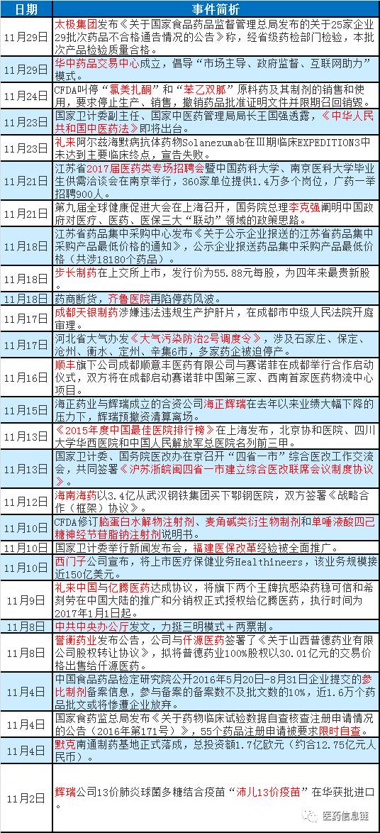 十一月医药政策解析全看点