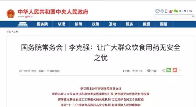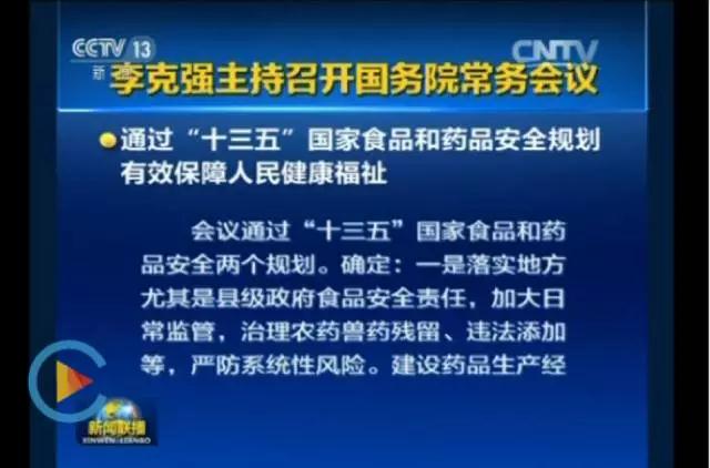 2月3日,农历新年的第一个工作日,国务院总理李克强主持召开国务院常务会议,正式通过“十三五”国家食品和药品安全两个规划。