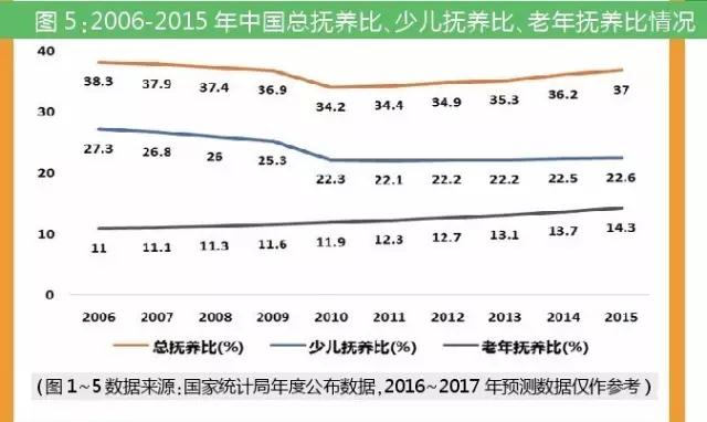 2015年我国65岁以上人口1.4亿,十年来逐年增加。根据国家统计数据,2015年中国总抚养比为37%,少儿抚养比22.6%,老年抚养比14.3%。2006~2015年中国老年抚养比直线增加。消费需求升级,未来医保基金支付压力更大。
